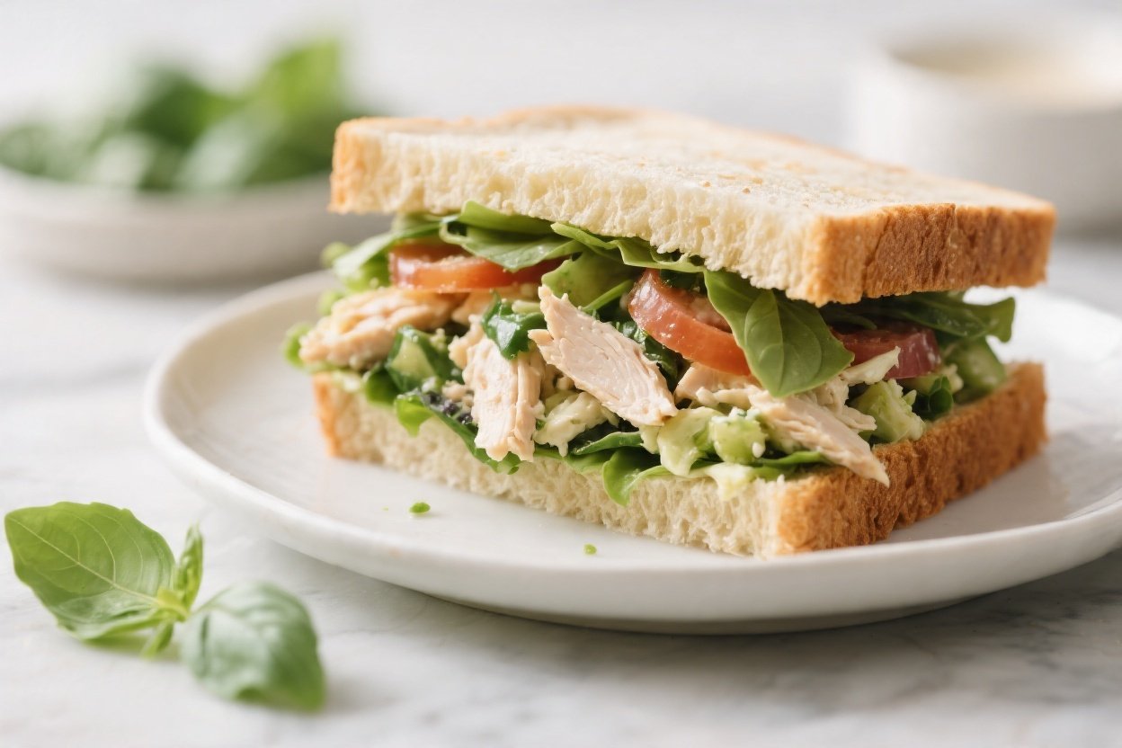 A great work lunch should be simple to pack, satisfying to eat, and feel a little special. This Basil Chicken Salad Sandwich checks every box. It’s bright, fresh, and creamy without being heavy.