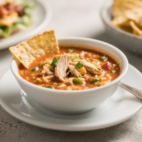 If you’re craving something warm, bright, and satisfying, Chicken Tortilla Soup checks every box. It’s packed with tender chicken, sweet corn, hearty beans, and a tomato-chile broth that tastes like it simmered all day—even if it didn’t. The crispy tortilla strips on top add crunch and soak up just enough flavor to keep every bite interesting.