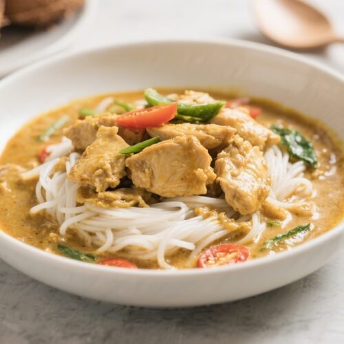 Coconut Curry Chicken with Rice Noodles is a cozy, confidence-boosting dish that turns simple staples into something special. The method is straightforward, the flavors are bright, and the results are consistently satisfying. Keep curry paste and coconut milk in your pantry, and you’re never far from a comforting bowl.