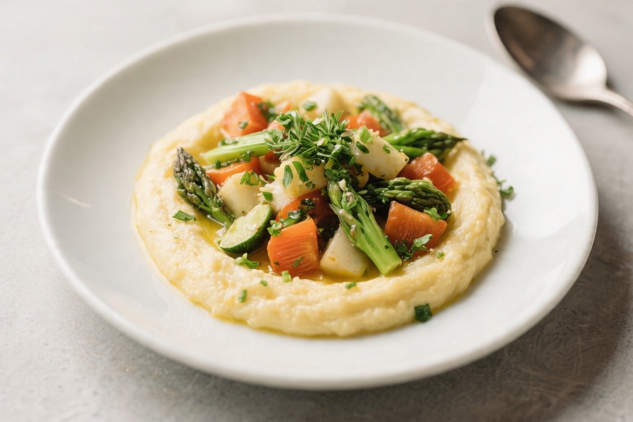 This recipe is all about balance. The polenta is rich and smooth, while the vegetables bring crunch and color.