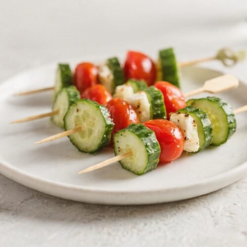 These skewers are light but satisfying. Cucumbers are hydrating and low in calories, offering crunch without heaviness. Tomatoes bring vitamin C and lycopene, an antioxidant linked to heart health. Mozzarella adds protein and calcium, helping you feel fuller while keeping the snack balanced. Using extra-virgin olive oil provides healthy fats that support heart health, while a modest drizzle of balsamic glaze adds flavor without much sugar if used sparingly.