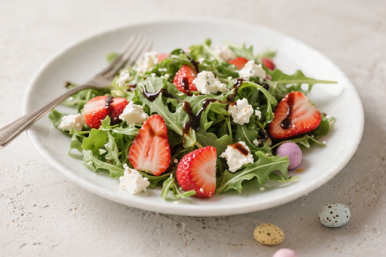 Easter Arugula Salad with Strawberries, Feta & Balsamic Glaze – Fresh, Simple, and Bright
