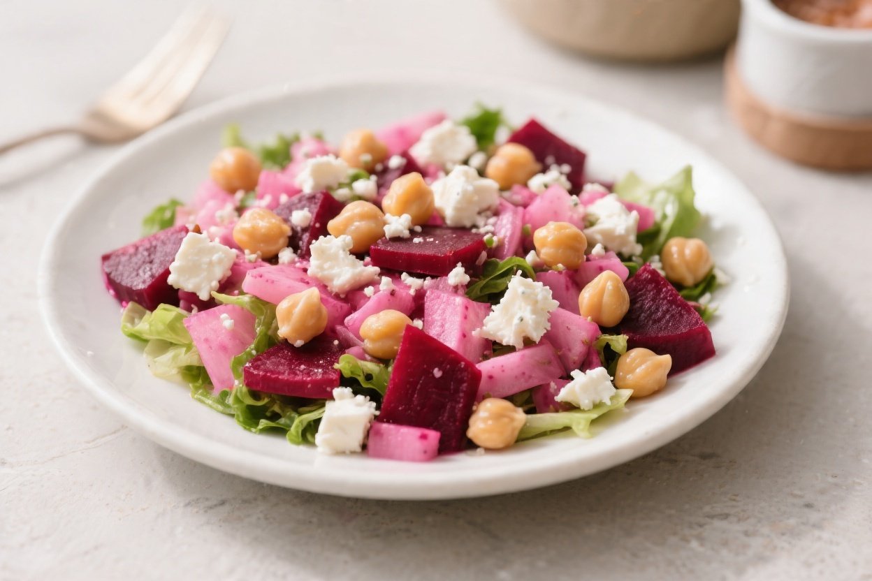 Healthy Pink Salad With Chickpeas, Feta & Beets – Bright, Satisfying, and Ready in Minutes