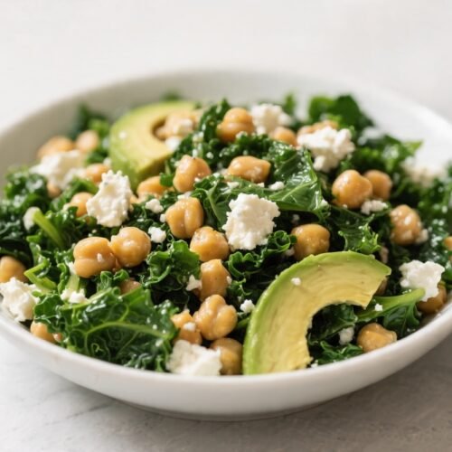 This High-Protein Chickpea & Kale Salad with Avocado & Feta is simple, bright, and deeply satisfying. It’s easy to prep, holds up well, and adapts to whatever you have on hand.