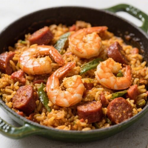 One Pot Shrimp and Sausage Jambalaya is big, bold, and weeknight-friendly. With simple steps and pantry ingredients, you get a satisfying, colorful meal that tastes like it simmered all day.