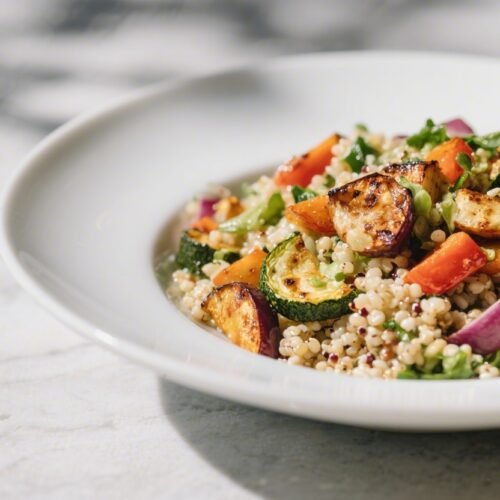 This recipe balances texture and flavor in a way that keeps every bite interesting. Roasting the vegetables concentrates their natural sweetness and adds charred notes that pair well with the clean, nutty taste of quinoa.