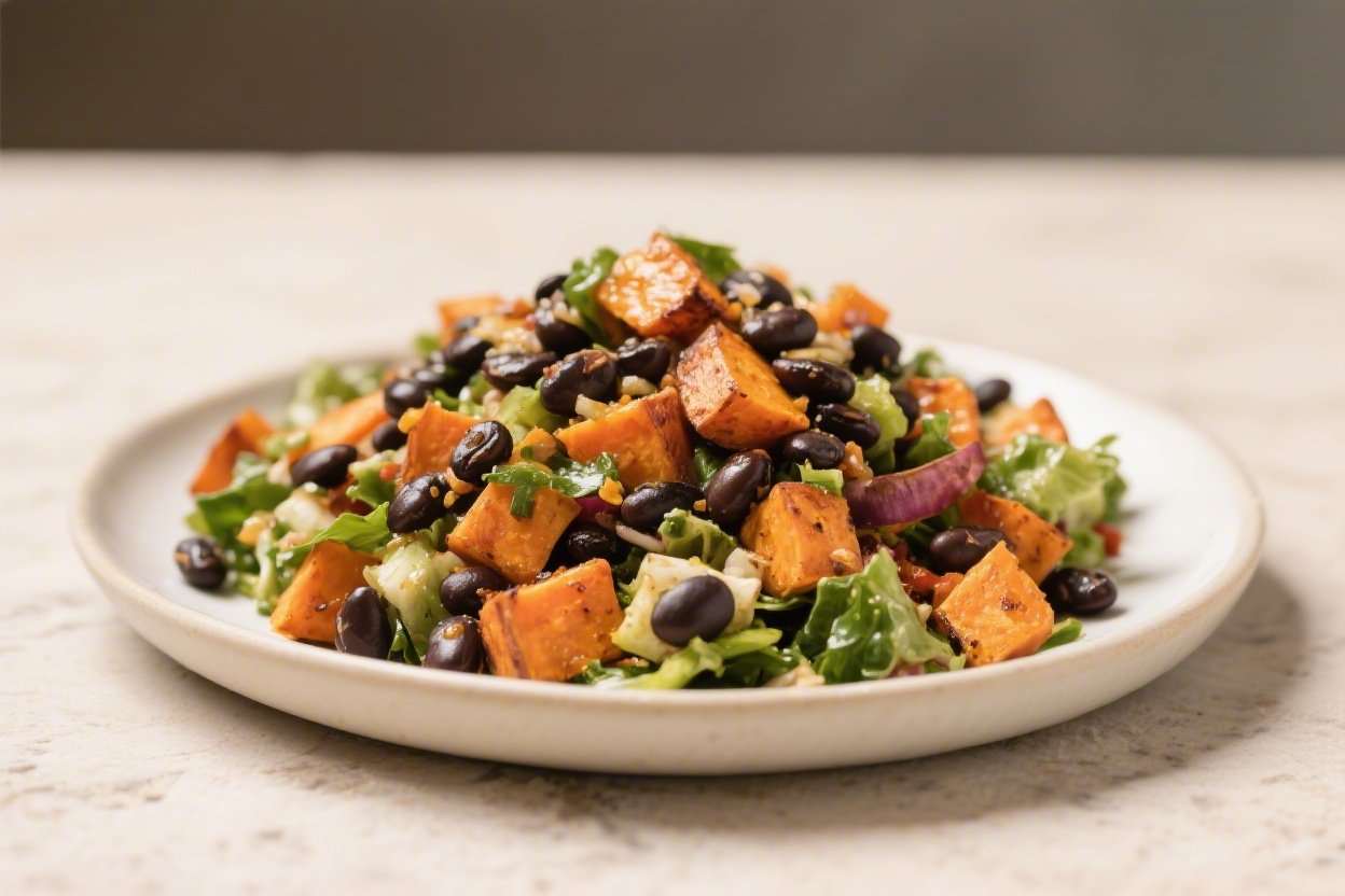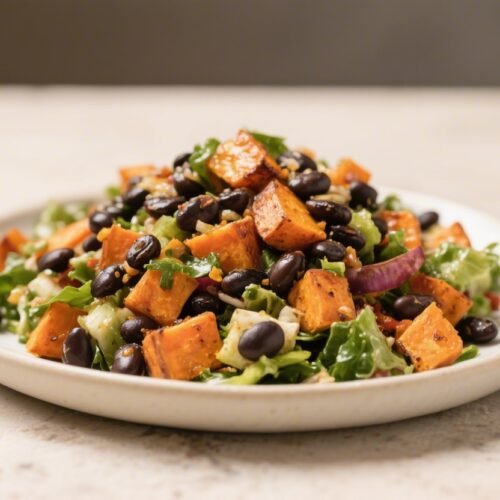 This salad brings together sweet, smoky, and zesty flavors in one colorful bowl. Roasted sweet potatoes pair beautifully with hearty black beans, crisp veggies, and a lively lime-cumin dressing. It’s easy to make, affordable, and filling enough for lunch or dinner.