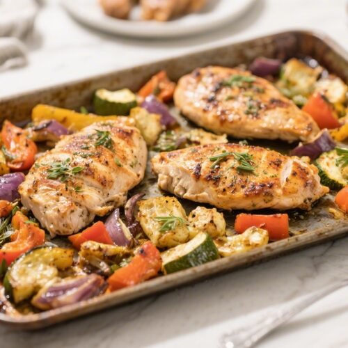 - Balanced meal in one go: Protein, colorful veggies, and healthy fats on a single sheet pan.