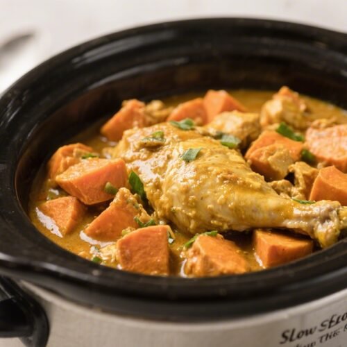 This is the kind of meal that makes your kitchen smell amazing and your evening feel easy. You toss everything into the slow cooker in the morning, and by dinner, you’ve got tender chicken, creamy sweet potatoes, and a rich, fragrant sauce. It’s comforting without being heavy, and bold without being fussy.