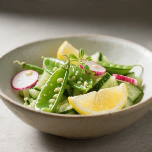 This Spring Snap Pea, Radish & Cucumber Bowl with Lemon Dressing celebrates fresh flavor and crisp texture with minimal effort. It’s flexible enough to match your pantry, and bright enough to feel special.