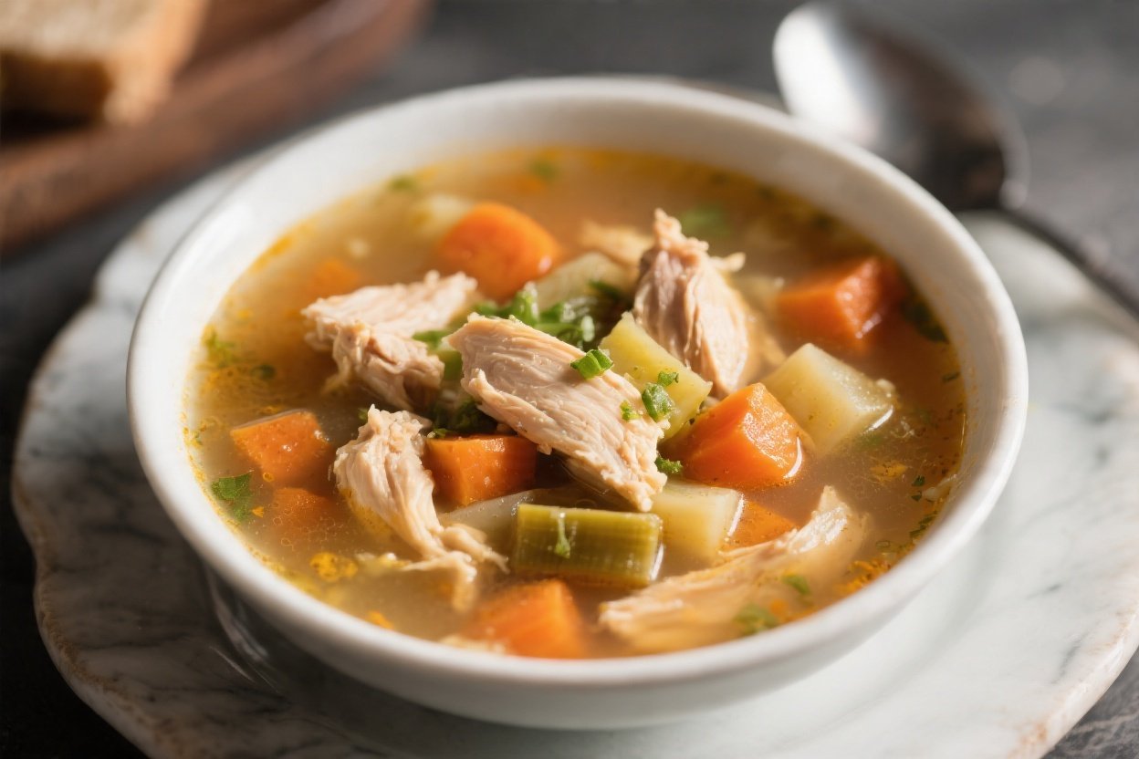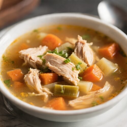 This soup leans on classic, familiar flavors: chicken, carrots, celery, onions, and potatoes, plus a few herbs. It’s budget-friendly, adaptable, and forgiving—you can make it with rotisserie chicken or from scratch with bone-in pieces.